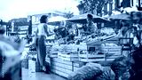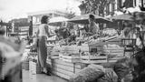 Hispanic Female Customer Buying Two Garlic Heads and a Pineapple From a Multiethnic Farmers Couple. Successful Adults Managing Small Business Farm Stall at a City Square Market