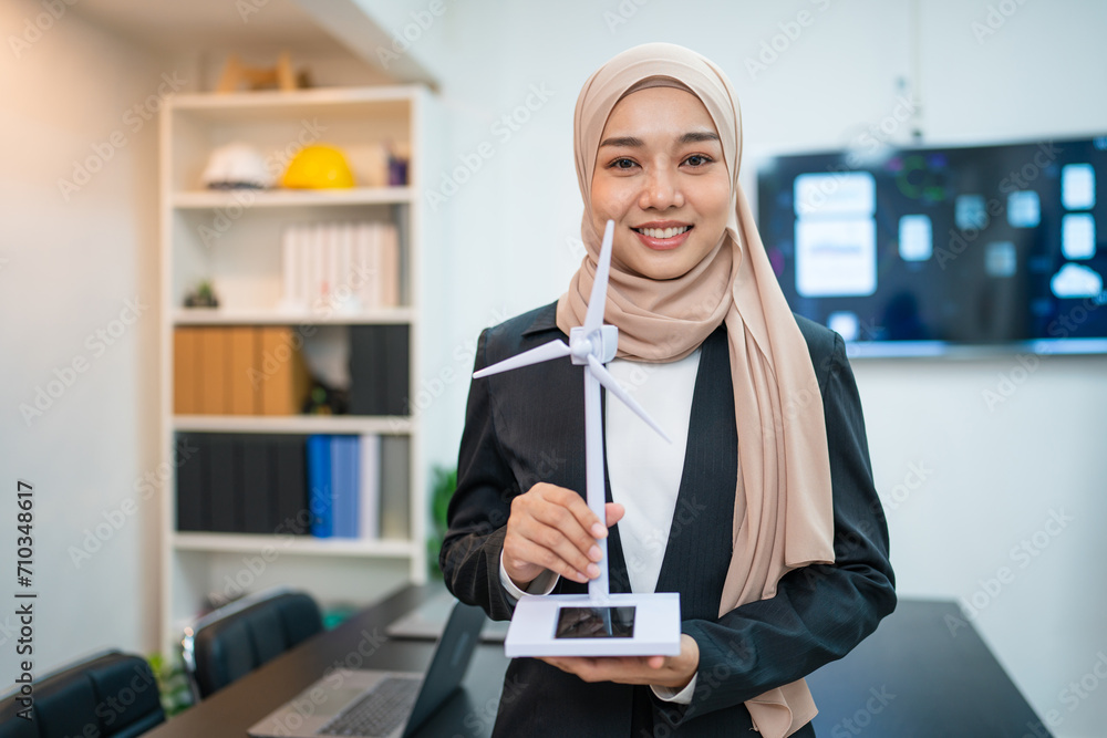 Green alternative energy concept. Business person meeting on solar cell panel technology.