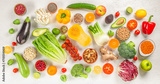 food background with assortment of fresh organic fruits. on a white background top view. Healthy eating. diet concept