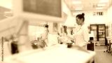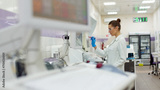 A female scientist controls the operation of devices for laboratory research. Modern laboratory technologies. Medical research centrifuge.