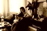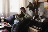 Woman reading on the armchair. Woman sitting on the armchair and reading a book.