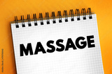 Massage - manipulation of tissues with the hand or an instrument for relaxation or therapeutic purposes, text concept on notepad