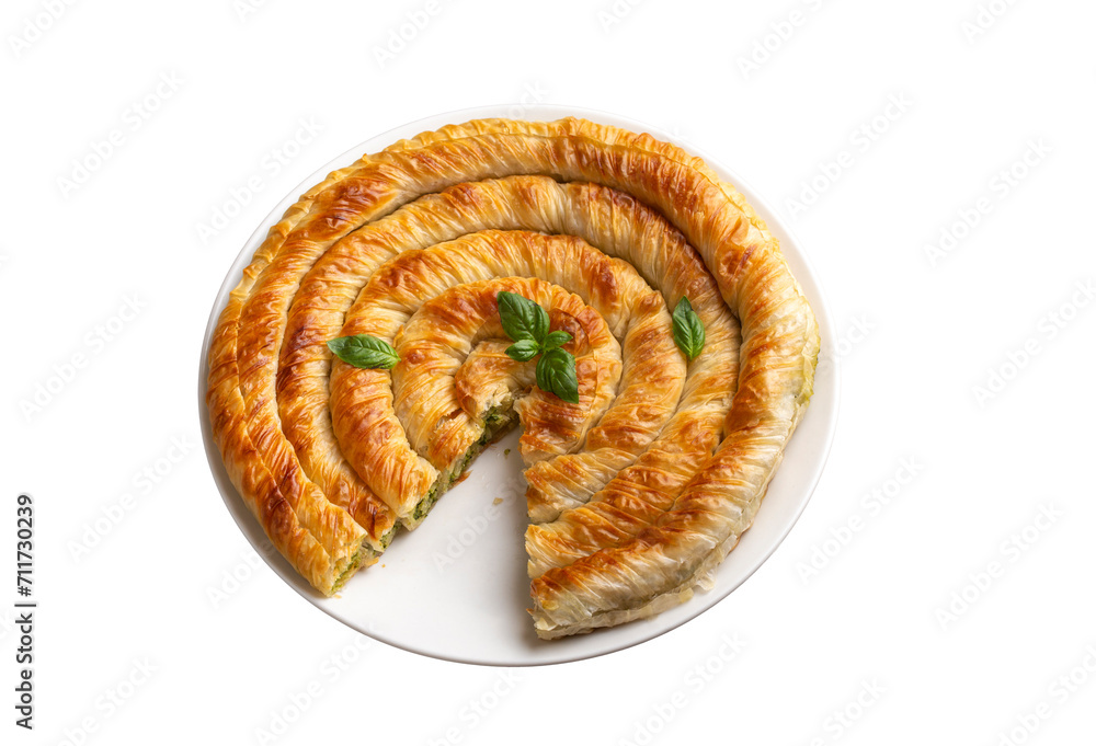 Turkish Tepsi Boregi, Round Borek, Tray pastry (Turkish name; rulo borek - ispanakli borek)