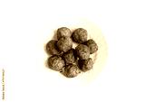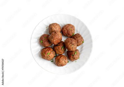 Round shaped balls of dry meatballs and french fries. Turkish name; kuru kofte ve patates