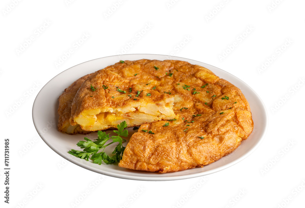 Spanish omelette with potatoes, typical spanish cuisine on gray concrete floor. Tortilla Espanola. Turkish name; Yumurtali patates