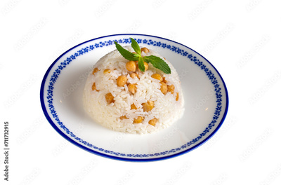 Turkish Rice with chickpea served, Turkish name; Nohutlu pilav or pilaf