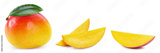 Fresh organic mango with leaves isolated on white background