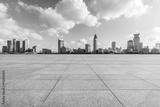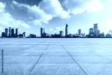 Empty square floor and city building scenery in Shanghai. Famous Bund landmark in Shanghai.