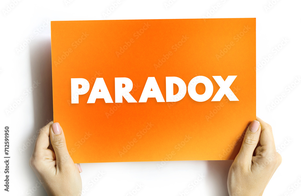 Paradox is a logically self-contradictory statement or a statement that runs contrary to one's expectation, text concept on card