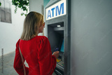 Woman using ATM on the street.