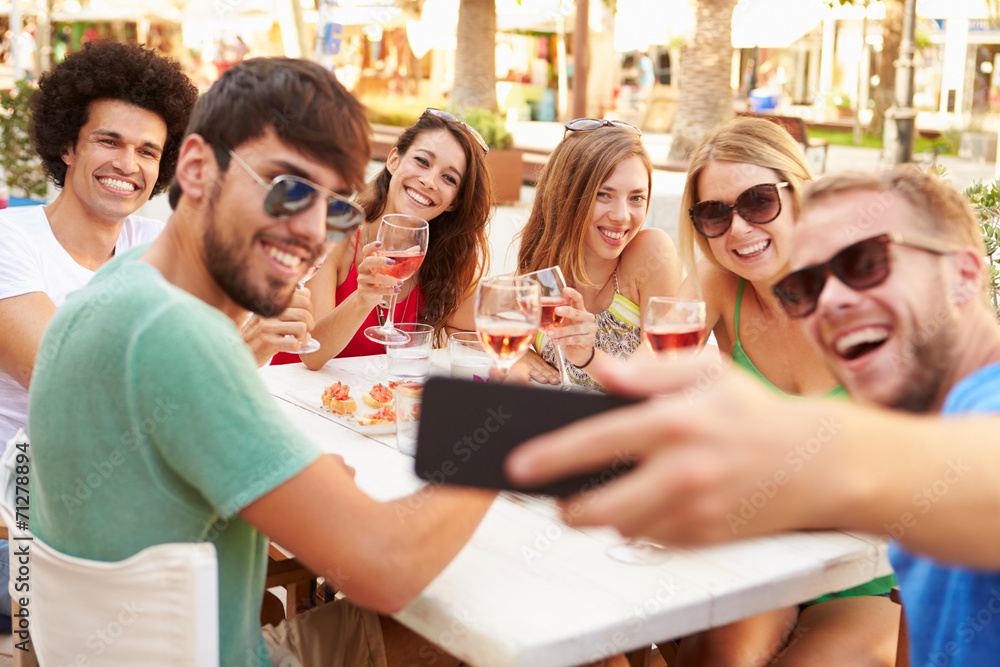 Group Of Friends Taking Selfie During Lunch Outdoors