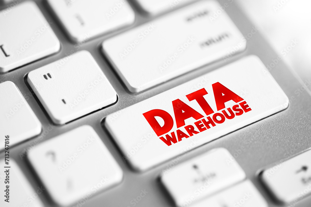 Data Warehouse - is a central repository of information that can be analyzed to make more informed decisions, text concept button on keyboard