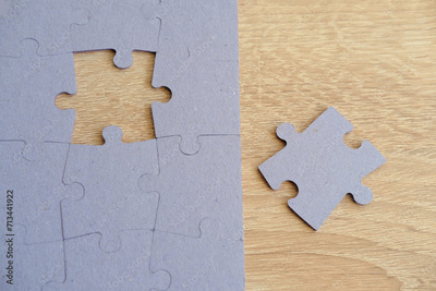 cardboard puzzle pieces, logical skills, puzzle solving and memory improvement, business concept for completing, memory improvement