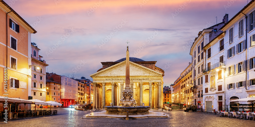 Rome, Italy with the Pantheon and Piazza Della Rotonda