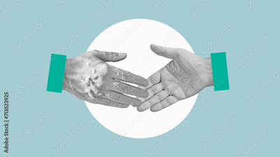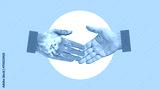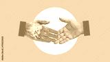 Collage with hands reaching together and shaking. Making peace and cooperate