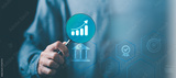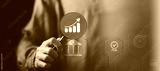 Businessman showing business growth and success graph ,concept of progress in development , financial efficiency and investment ,business strategy for goals ,increase in business profits