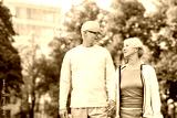 senior couple in city park