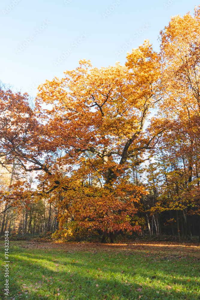 Colourful autumn forest in the Brabantse Wouden National Park. Colour during October and November in the Belgian countryside. The diversity of breathtaking nature