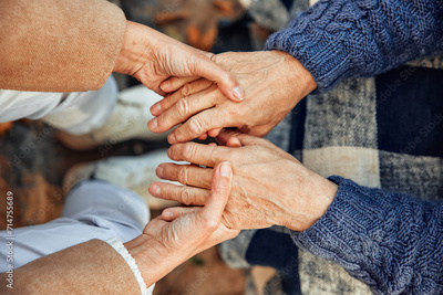 Senior couple walking in the park in autumn
