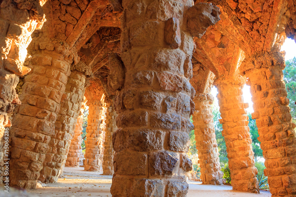 Columns designed by Antoni Gaudi in park Guell in Barcelona, Spain