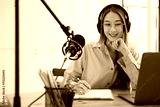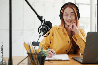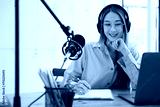 Live Podcast Session with Smiling Female Host.