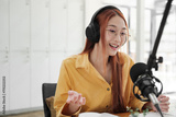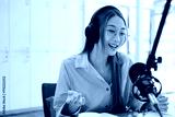 Live Podcast Session with Smiling Female Host.