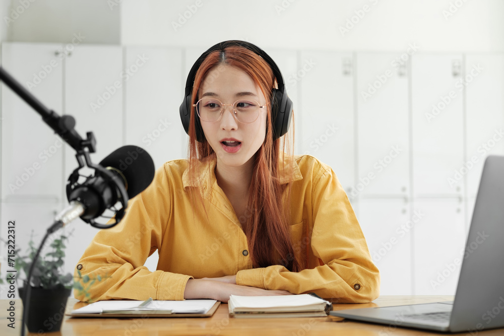 Live Podcast Session with Smiling Female Host.