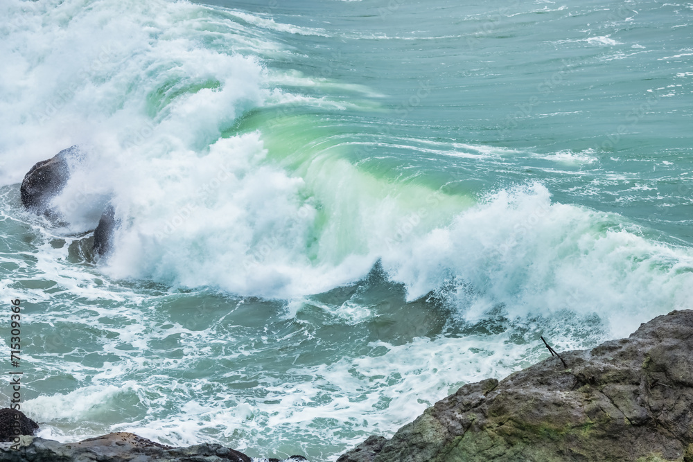 Wave splashing close-up. Crystal clear sea water, in the ocean in San Francisco Bay, blue water, pastel colors.
