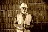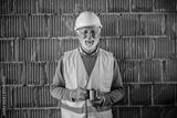 Portrait of a senior architect having coffee break while smiling at the camera.