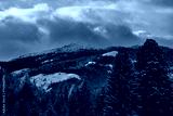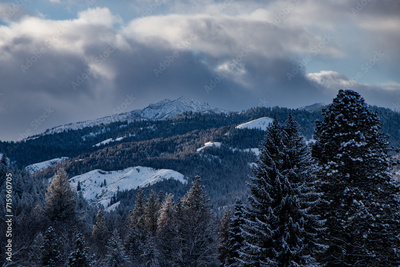 Snow-covered hills and forest along the Twisp River in the Methow Valley, Washington, USA