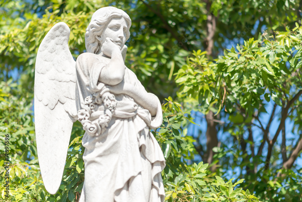 Beautiful young female angel outdoors