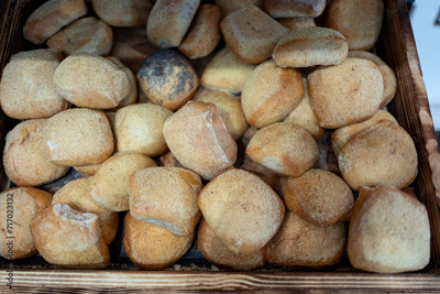 close up of a lot of bread rolls
