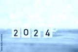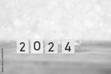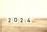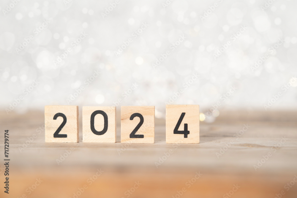 Wooden letters spelling date 2024 on vintage wooden table, Time Management and Planning, office aesthetics and business settings