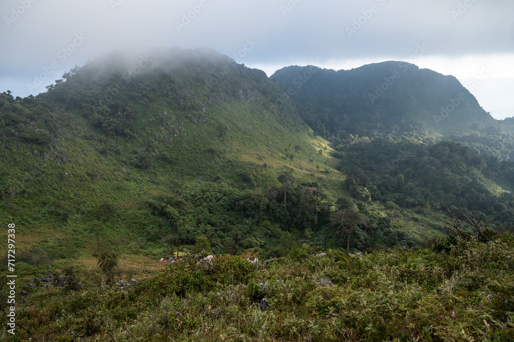 View of landscape mountains in Chiang Dao wildlife reserve area in Chiang Mai province of Thailand.