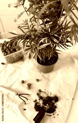 Repotting chamaedorea palm plant at home. Houseplant hobby