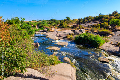 View of Tokovsky waterfalls on the Kamenka river in Dnipropetrovsk region, Ukraine