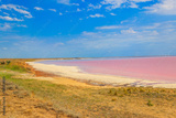 View of the pink salty Syvash lake in Kherson region, Ukraine