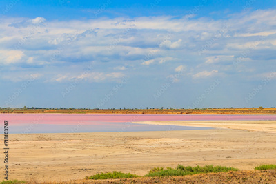 View of the pink salty Syvash lake in Kherson region, Ukraine