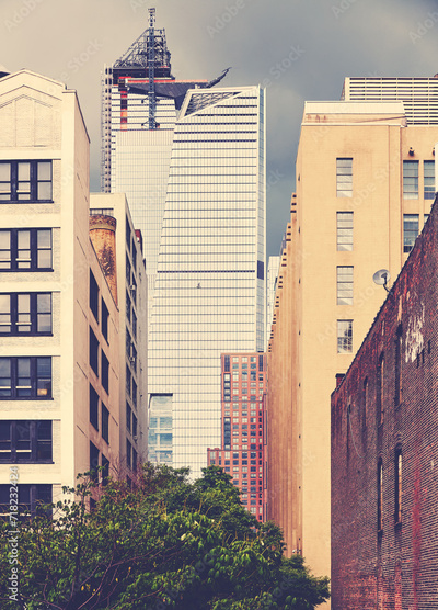 Retro toned urban view of New York City, USA.