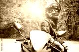 Confidence Asian woman wearing a motorcycle helmet before riding. Helmets contribute to motorcycle safety by protecting the rider's head.