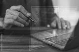 Document Management Checking System, online documentation database and process manage files. Online survey and digital form checklist by laptop computer,