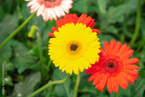 Beautiful display of assorted orange pink red white Gerbera Daisy flower cross hybrida long stem cartwheel, jaguar, majorette, bengal botanic garden, Barberton, Transvaal, Veldt daisies bloom