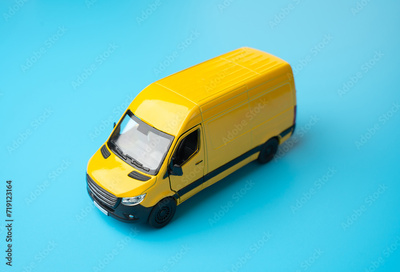 Yellow delivery van. Delivery of mail and cargo. Efficiency, speed, and reliability in transportation and logistics. Delivering goods and services. E-commerce, retail, or distribution networks.