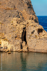 High cliffs in St. Paul's Bay in Rhodes in Greece.