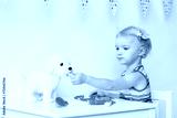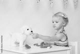Little girl playing doctor with puppy toy