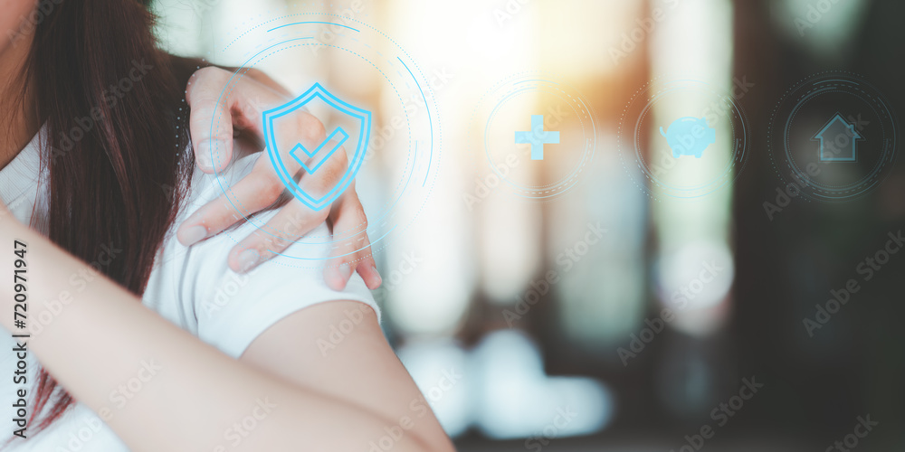 Concept of protecting and protecting the safety of your family and someone you love ,Insurance management planning ,health care and finance ,life and property protection planning