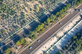 Arial view of highway through the field of trees