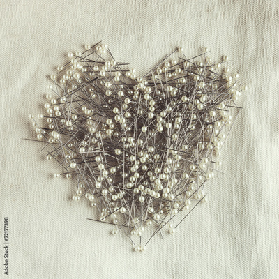 Pins in heart shape love concept