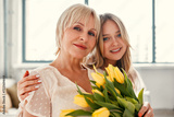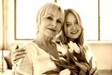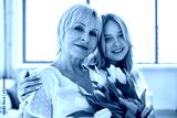 Mom and daughter isolated on background