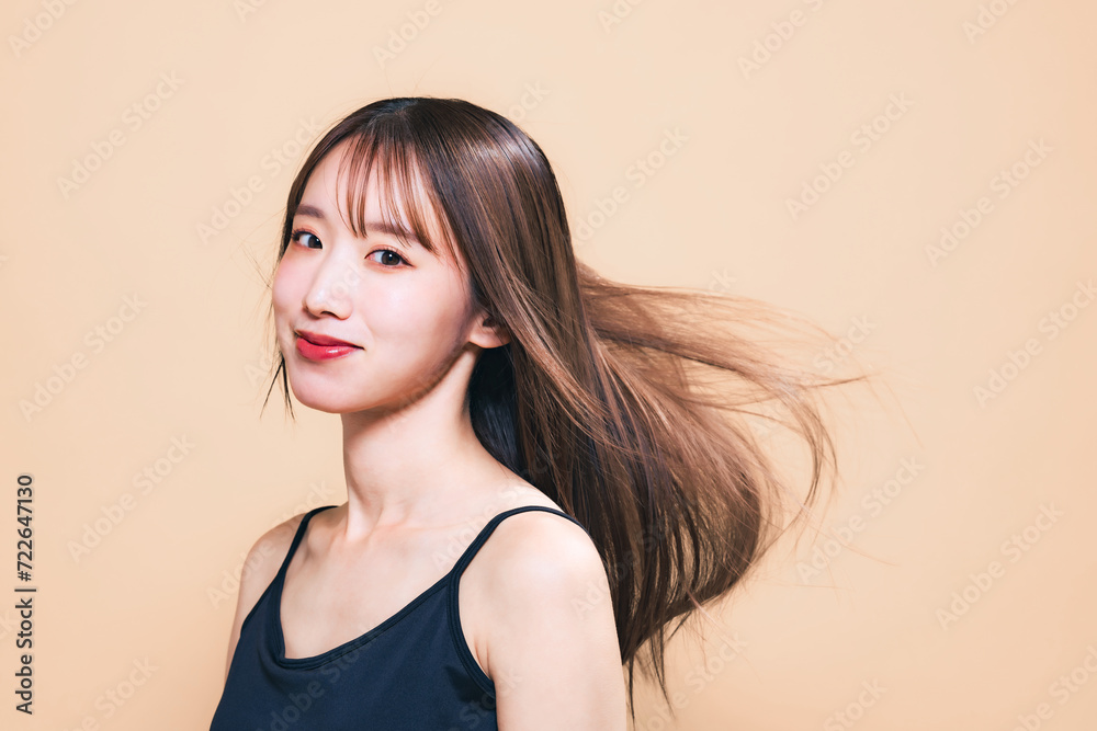 髪を風になびかせる女性のヘアケアやコスメやスキンケアのイメージ
